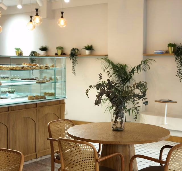 Buttery croissant filled with pistachio cream and topped with crushed pistachios.